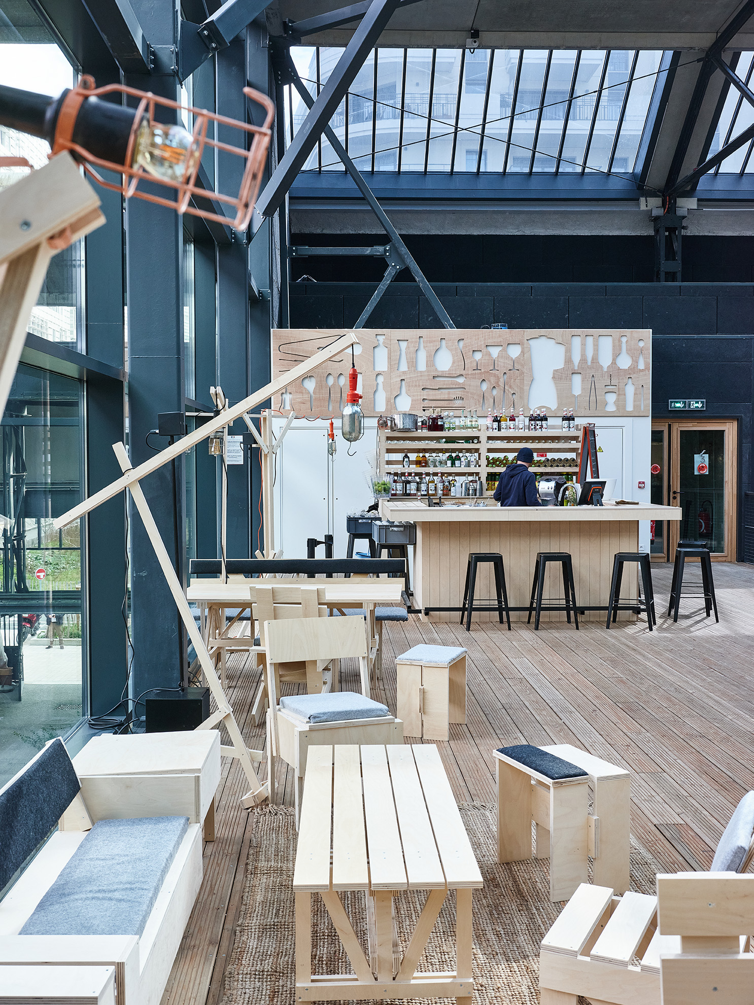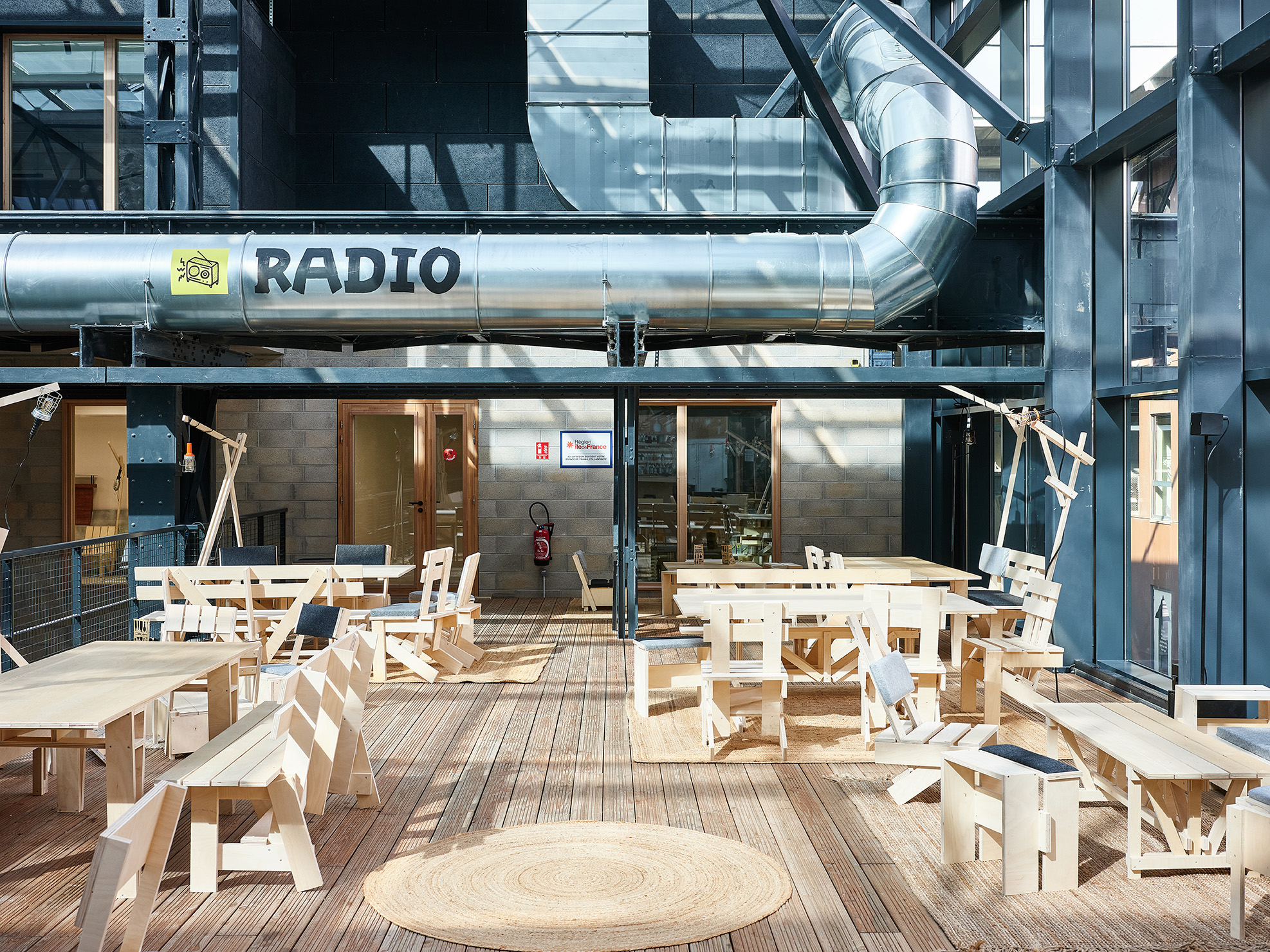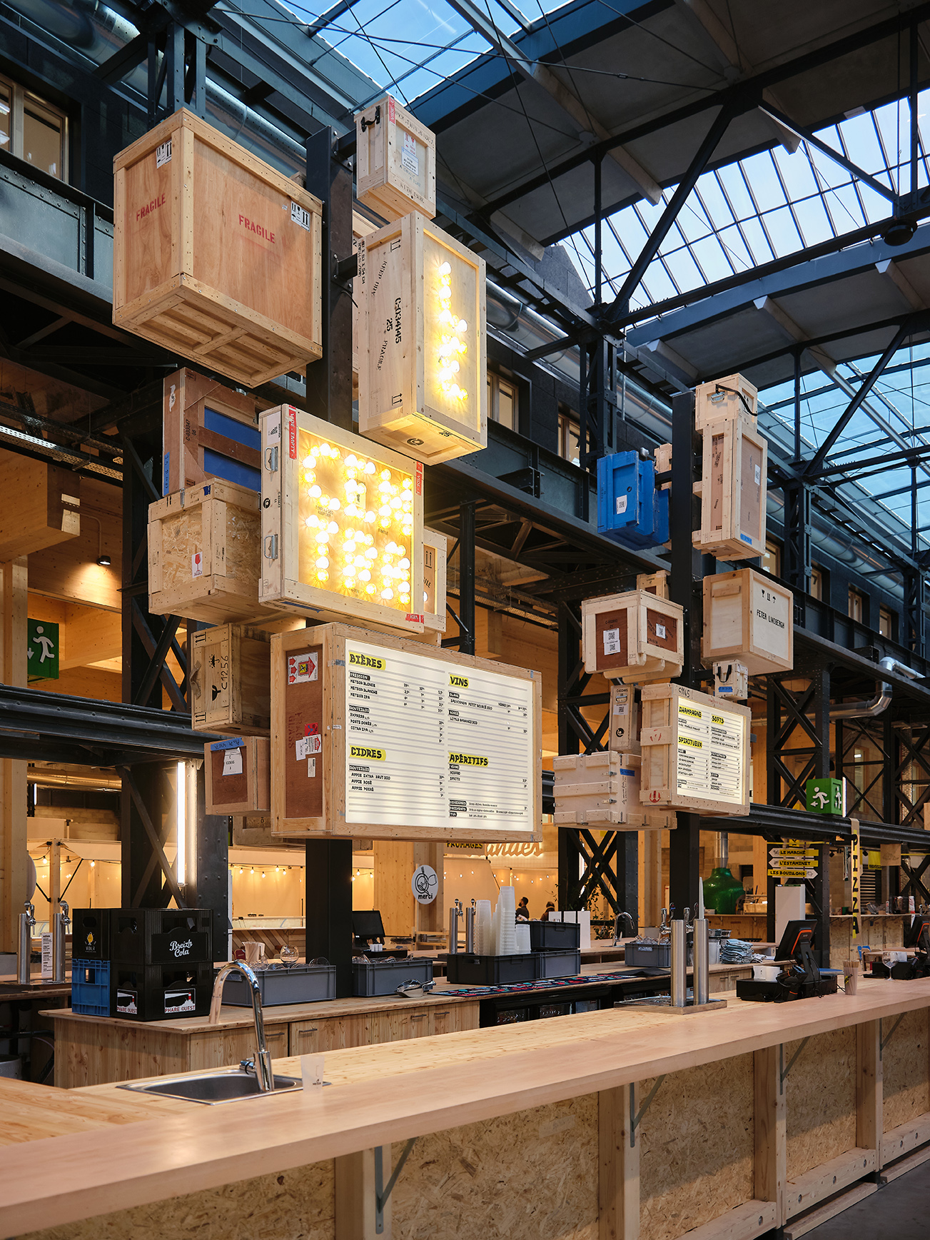 Agent M, composé de concepteurs-designers aux parcours atypiques, ont œuvré trois ans sur le devenir de la halle Man avec les équipes de La Lune Rousse pour donner vie à cette vision. Dans un esprit de place de village, ils sont ont travaillé en étroite collaboration avec les architectes KOZ pour développer la programmation du lieu, aboutissant à un dialogue entre les valeurs d’usage esthétique et le mobilier, qu’il soit signalétique ou architectural.