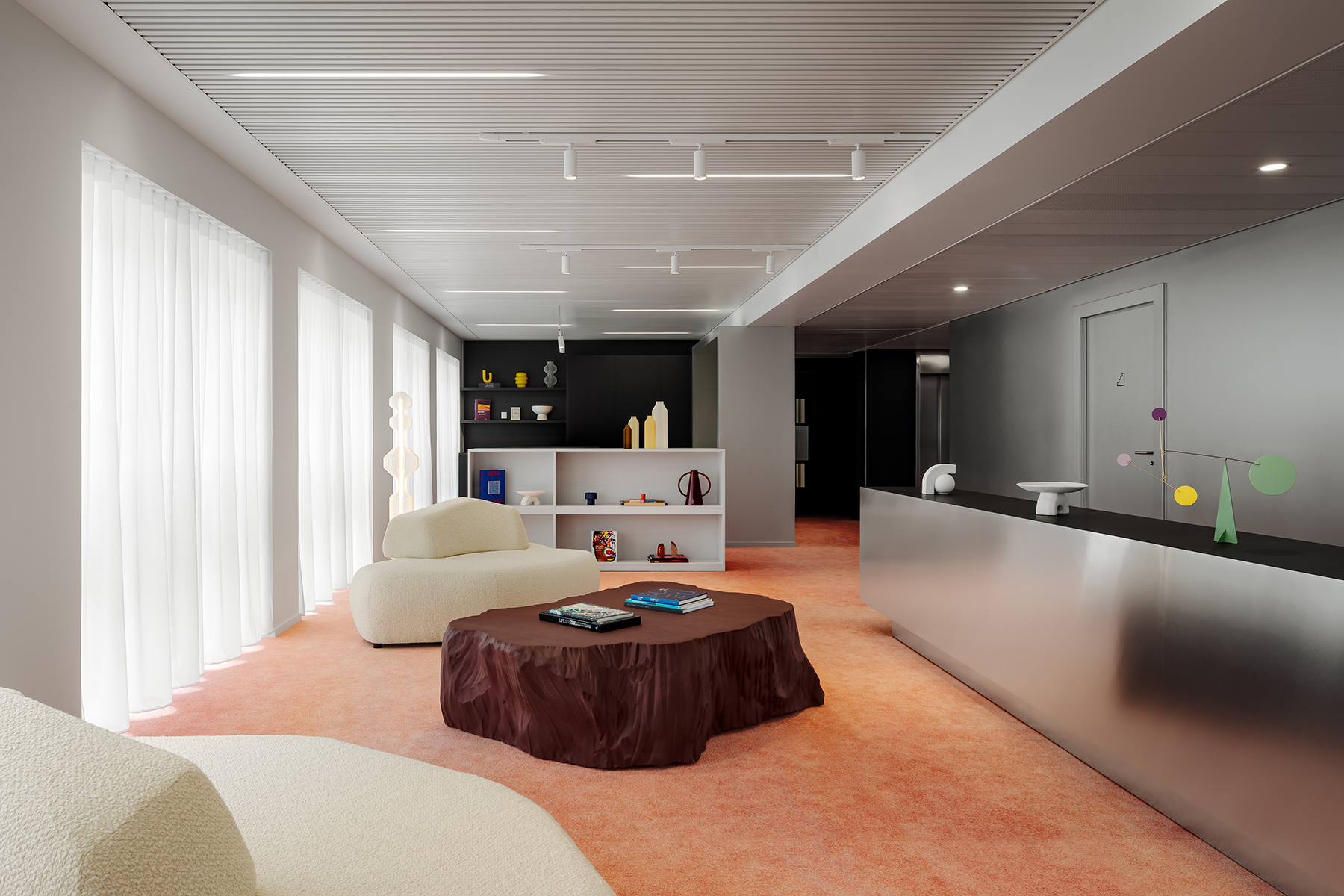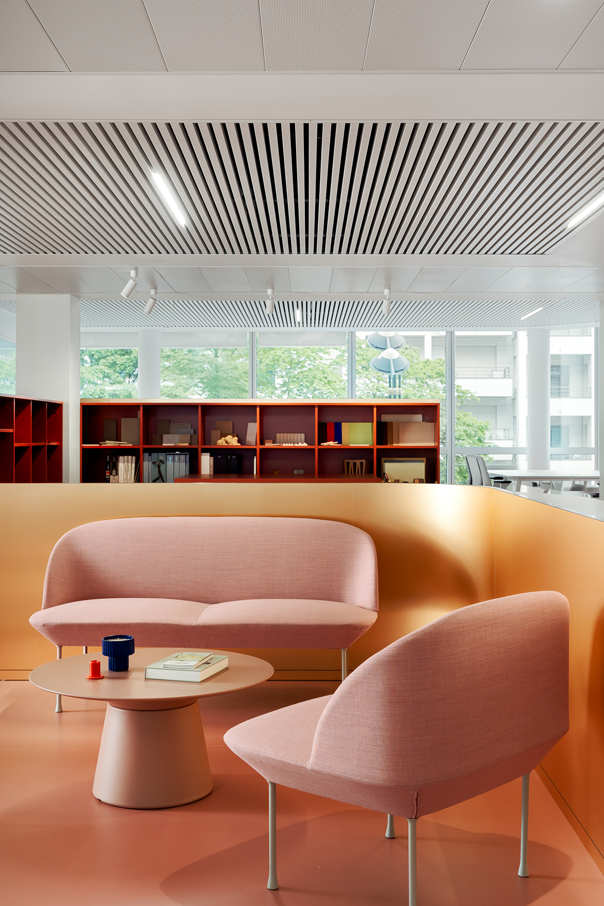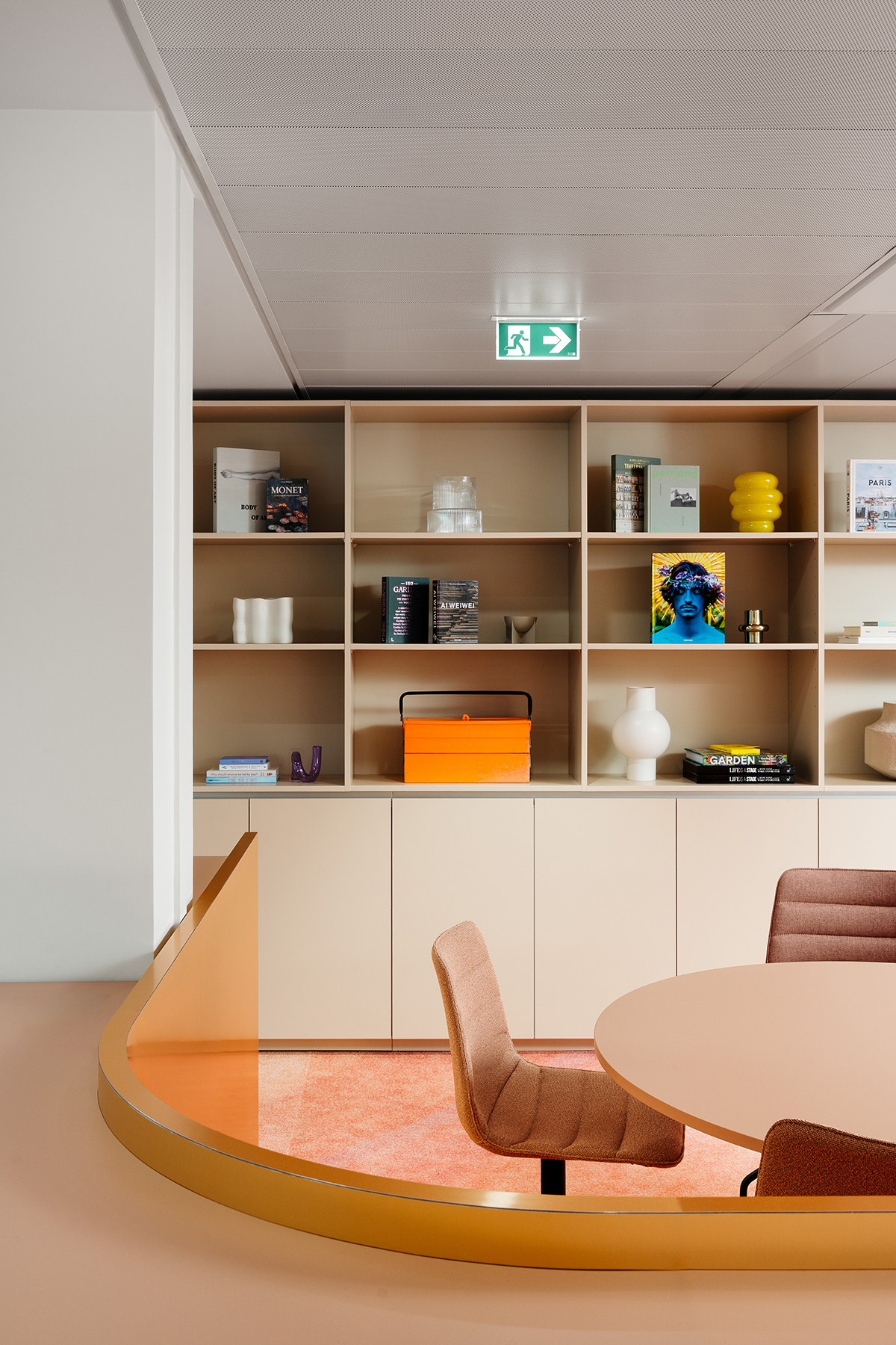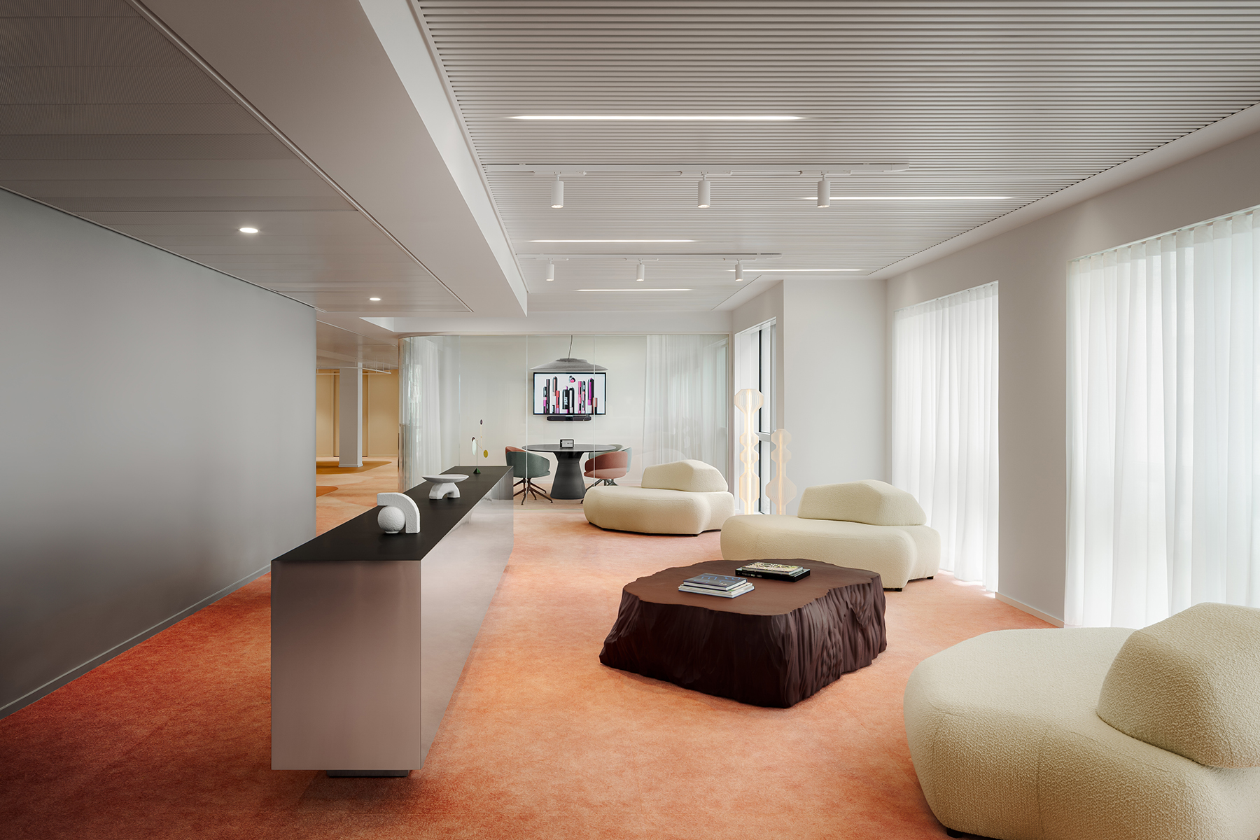 Le visiteur est dès son arrivée immergé dans l’univers de marque Make Up For Ever, avec un espace d’accueil l’incarnant. Il accède ensuite au coeur collaboratif de l’espace : le make up warehouse, autour duquel rayonnent des espaces de travail alternatifs tels que les espaces métiers et les salles de réunions, puis les zones plus réservées tels que les bureaux ou les box. Une stratégie vivante et adaptée aux postures nomades que requiert le passage à un espace de travail partagé.